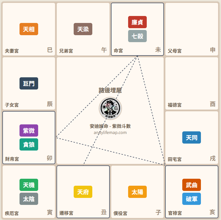 路邊埋屍格 - 廉貞七殺同宮寅申位