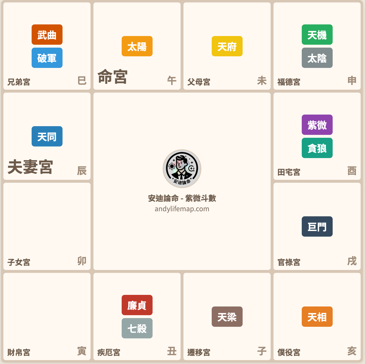 - 夫妻宮天同的組合說明:太陽女適合溫和的伴侶,這是命盤的自然配置
